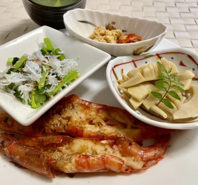 365日クッキング 4月24日のお昼ごはん(焼海老、青森県 浪岡城跡の桜) 焼海老、自家製炒めメンマ、小松菜のしらす和え、キムチ納豆。 【365日cooking】調理時間は30... 2024年5月28日