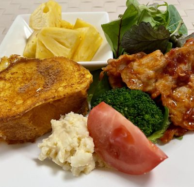 365日クッキング 6月22日の朝ごはん(軽井沢 旧ロミッシー別荘、フランス人浮世絵師ポール・ジャクレー、ラタトゥイユ) 目玉焼き、シラスチーズトースト、ソーセージとポテトサラダ、ラタトゥイユとプチトマト、レタスと豆のサラ... 2024年7月23日