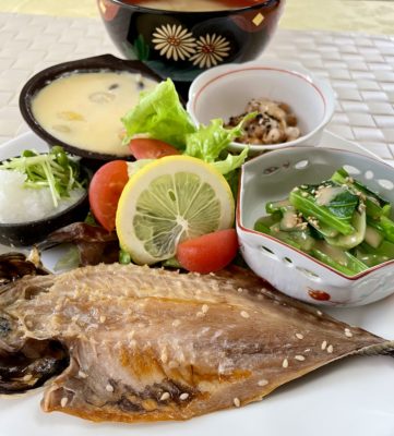 365日クッキング 10月8日晩ごはん 2021年10月8日 秋鮭の塩焼き、豚汁、ブロッコリーのチーズ焼き、ほうれん草の胡麻和えと菊のお浸し、キムチ納豆。 【365日cooking】調理時間30分以内がサブコンセプトコロナ禍で家族そろって在宅work。外食を避け、テイクアウトもクッキングのうちと唱えながら得意でもない料理を手を抜きながらひたすら作る。 2020年10月8日の晩ごはん 豚の生姜焼きと焼き野菜、鰹のお刺身。焼きニンニク付きである。