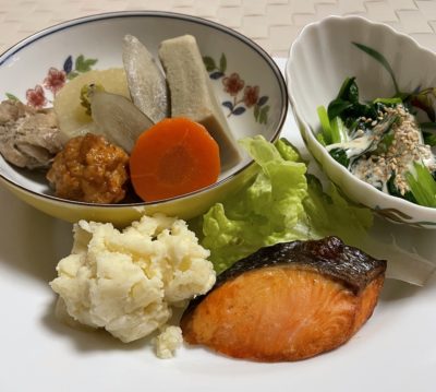 365日クッキング 1月14日の晩ごはん(鶏だんご汁と西京味噌のミルクポタージュ) 鶏団子汁、金胡麻豆腐と小松菜のお浸しにエンドウ、メカブの柚子醤油、キムチ納豆。 【365日cooking】調理時間30分以内がサブコンセプト...