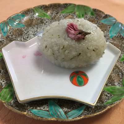 お食後は桜を乗せたおはぎ。