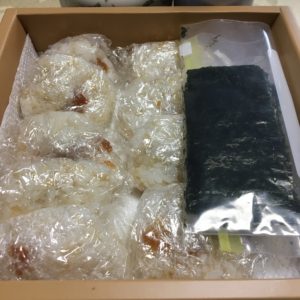 帆立フライ、エリンギの素揚げとレモン、千切りキャベツとレタス、キャロットラペとトマト、ヨーグルトとドライクランベリー、いちご。