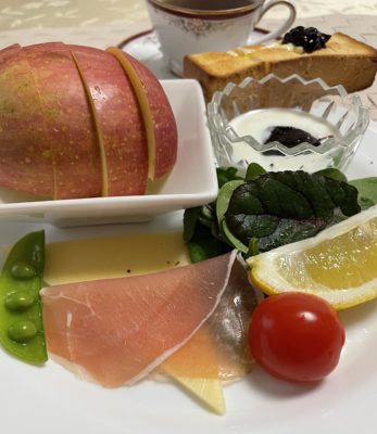 365日クッキング 2月20日の朝ごはん(生ハムとゴーダチーズ) 生ハムとゴーダチーズにエンドウ、サラダリーフにレモンとプチトマト、ヨーグルトとプルーン、りんご。 【365日cooking】調理時間30分以...