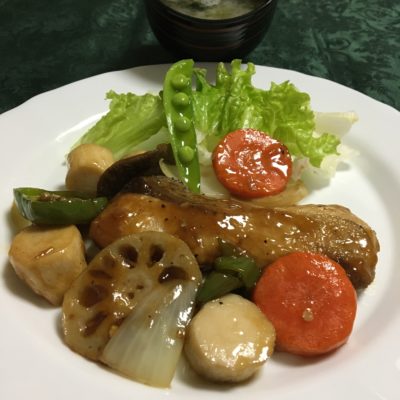 酢豚の豚肉を鰤に置き換えたので「酢ぶり」と名付けた。家人には豚肉よりも好評であった。あんはケチャップなしで。