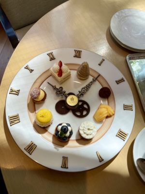 ラムステーキ、グレープフルーツサラダ、人参サラダ、ツナサラダ。