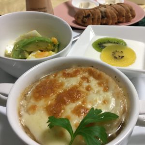 365日クッキング 10月20日の朝ごはん(ホールオニオンのグラタンスープ) 2021年10月20日 おでん風の煮物、レタスと塩たまご、キムチ納豆、早生ふじりんご。塩たまごは半熟の茹でたまごを塩水に浸した物。 【365日cooking】調理時間30分以内がサブコンセプトコロナ禍で家族そろって在宅work。外食を避け、テイクアウトもクッキングのうちと唱えながら得意でもない料理を手を抜きながらひたすら作る。 2020年10月20日の朝ごはん ホールオニオンのグラタンスープ、アボカドとたまごのサラダ、ヨーグルトとキウイフルーツ。