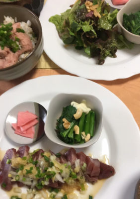 365日クッキング 4月26日のお昼ごはん(海鮮あんかけごはん、ふくだちの酢味噌) 2024年5月28日 海鮮餡かけごはん、ふくだちの酢味噌がけ、冷や奴、胡瓜の中華風。 【365日cooking】調理時間は30分以内がサブコンセプトコロナ禍以来、家族そろって在宅work。低いハードルで 普通のごはんを気楽に作る。 2022年4月26日のお昼ごはん グラタン、ブロッコリー、小松菜の鯖味噌和え。 2021年4月26日のお昼ごはん 月見そば。 2020年4月26日のお昼ごはん 鰹のタタキ、ネギトロ丼、ふくだちのお浸し、野菜サラダ、カブのお漬物。