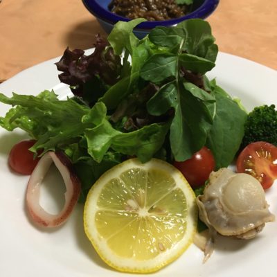 海鮮サラダ、キーマカリー。