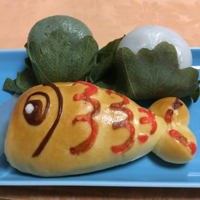 鯉のぼりパン、柏餅、ヨモギの柏餅。