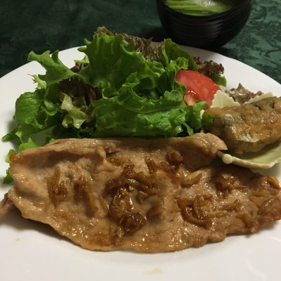 豚モモの生姜焼き、野菜サラダ、鰺の南蛮漬。