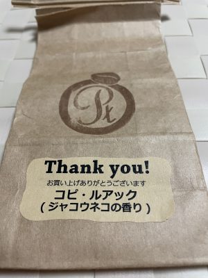 プラチナの名前に惹かれ、コーヒータイムのついでにコピ・ルアックを購入。人生2度目のコピ・ルアクである。