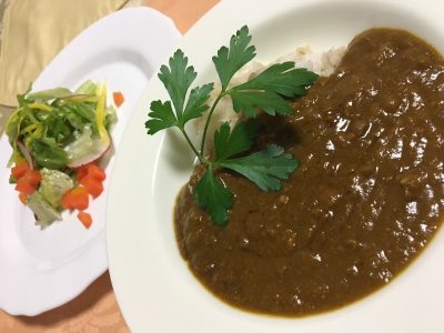 キーマバラックカレー、サラダ。