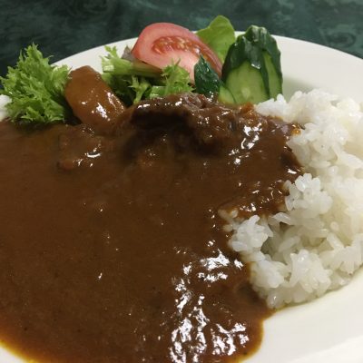ビーフカレーライスと野菜サラダ。