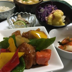 365日クッキング 10月23日の晩ごはん 2021年10月25日 おでん風の煮物、小松菜のナムル、春雨の酢の物と紅大根のピクルス、キムチ納豆。 2020年10月23日の晩ごはん 鶏の酢豚、をふろふき大根、カリフラワーと紫キャベツのサラダ、シメジのおろし和え、キムチ納豆。