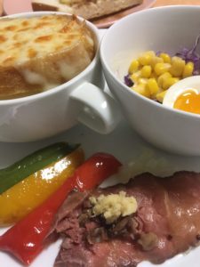 365日クッキング 11月9日の朝ごはん 2021年11月10日 ポークチャップとパプリカのソテー、ぶろっこりー、フルーツグラノラのイングリッシュマフィン、塩たまご、ラ・フランス。 【365日cooking】調理時間30分以内がサブコンセプトコロナ禍で家族そろって在宅work。テイクアウトもクッキングのうちと唱えながら得意でもない料理を手を抜きながらひたすら作る。 2020年11月9日の朝ごはん ローストビーフとパプリカのソテー、オニオンのグラタンスープ、塩たまごとコーンと紫キャベツ。