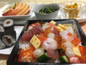 365日クッキング 8月26日晩ごはん(テイクアウトお寿司) メインはスーパーのお寿司。手抜きをする日もある。付け合わせにお残りの冷製煮物、胡瓜と若布の酢の物、サラダ。 【365日cooking】調理時...