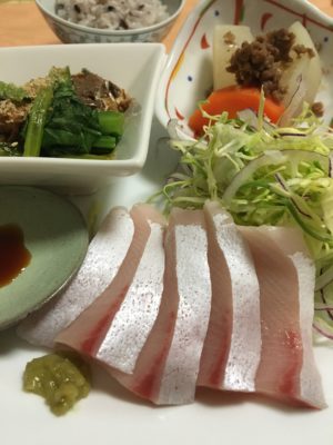 365日クッキング 11月30日の晩ごはん(寒ぶりの季節) ブリの刺身、キャベツの千切り、鯖味噌とほうれん草のお浸し、根菜の煮物そぼろがけ。 【365日cooking】調理時間30分以内がサブコンセプ...