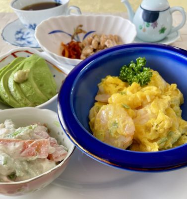 365日クッキング 4月4日のお昼ごはん(海老と卵の炒め、鰤の酢豚「酢鰤」) 海老と卵の炒め、人参と春菊の白和え、アボカドスライス、キムチ納豆。 【365日cooking】調理時間は30分以内がサブコンセプトコロナ禍以...