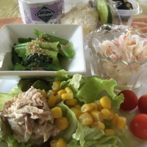 ご飯作りがスランプ気味である。コンビニに朝食を買いに走ろうと思ったが面倒なので作ることにしたが冷凍しておいたパンや揚げ野菜などに救われた。