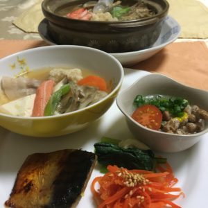 365日クッキング 1月19日の晩ごはん(天丼と海老つみれ汁) 2022年1月21日 天丼、キャベツの千切りとレタスにエンドウ、煮豆、汁かけうどん。天丼とうどんはテイクアウト。 【365日cooking】調理時間30分以内がサブコンセプトコロナ禍で家族そろって在宅work。毎日、普通のごはんを淡々と作る。 2021年1月19日の晩ごはん 海老つみれ鍋、鯖西京味噌焼、人参炒めと小松菜のお浸し、おろし納豆。