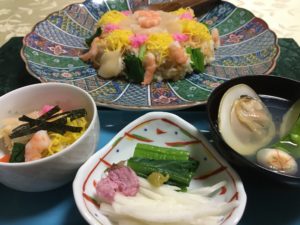 365日クッキング 3月3日の晩ごはん 2022年3月4日 ちらし寿司、アサリのすまし汁、鶏肉と根菜の煮物、グレープフルーツ。ひな祭りの行事食に似せて。蛤の潮汁の替わりにアサリのお汁。 お食後は桜餅。 【365日cooking】調理時間30分以内がサブコンセプトコロナ禍で家族そろって在宅work。低いハードルで毎日普通のごはんを作る 2021年3月3日の晩ごはん ちらし寿司、蛤の潮汁、長芋の千切りとさくらの花の塩漬け、小松菜のお浸し。 2020年3月3日の晩ごはん