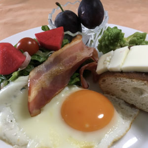 365日クッキング 9月13日の朝ごはん(ミネストローネとパンプキンサラダ) ベーコンエッグ、フォカッチャ、赤いサラダ、ロマネスコ、プルーン。 【365日cooking】調理時間30分以内がサブコンセプトコロナ禍で家族...