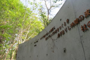 新緑のブナ林。雪上にりんごが3個あることにお気づきだろうか。何故かは判らない。