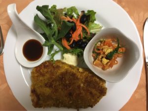 365日クッキング 9月8日の朝ごはん(チキンカツレツ、鮭のカマ焼き) チキンカツレツ、レタスにナッツのサラダ、生食パンにシナモンバター、ヨーグルトとブルーベリー。免疫力向上を狙い、ニンニクをたっぷりとすり込んだ...