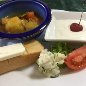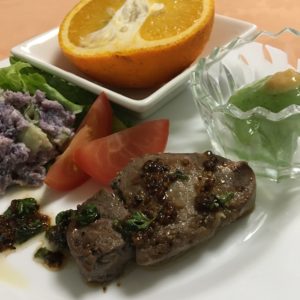 365日クッキング 1月14日の朝ごはん(さつまいものサラダ、海老ときのこのアヒージョ) 磯辺餅、温奴の肉味噌がけ、さつまいものサラダと紫キャベツの千切りにエンドウ。 【365日cooking】調理時間30分以内がサブコンセプトコ...