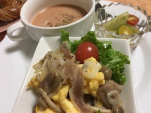 365日クッキング 9月11日の朝ごはん(じゃこ天焼き、揚げ野菜のウスターソース和え) 2021年9月11日 じゃこ天焼き、揚げ野菜のウスターソース和え、紅大根のピクルス、キムチ納豆、ヨーグルトと冷凍ピオーネ。 【365日cooking】調理時間30分以内がサブコンセプトコロナ禍で家族そろって在宅work。外食を避け、テイクアウトもクッキングのうちと唱えながら得意でもない料理を手を抜きながらひたすら作る。 2020年9月11日の朝ごはん ベーコンとシメジの卵炒め、ガスパチョ、プチサラダ。卵炒めには免疫力向上を期待して青森県産ニンニクをたっぷりと。