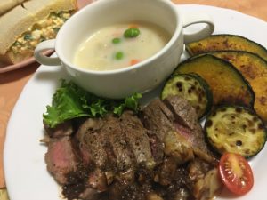 365日クッキング 9月14日の朝ごはん(パンプキンサンド、サーロインステーキ) 2021年9月14日 パンプキンサンド、レタスサラダ、プルーン、ヨーグルトとブルーベリー。 【365日cooking】調理時間30分以内がサブコンセプトコロナ禍で家族そろって在宅work。外食を避け、テイクアウトもクッキングのうちと唱えながら得意でもない料理を手を抜きながらひたすら作る。 2020年9月14日の朝ごはん サーロインステーキと野菜のソテー、たまごサンドウィッチ、西京味噌のミルクスープ。