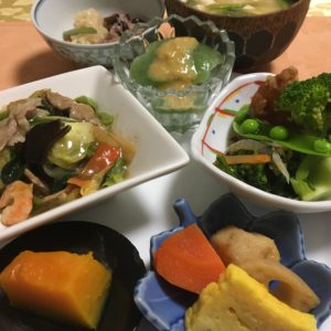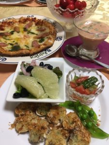 365日クッキング 7月5日の晩ごはん 2022年11月9日 レモン風味の豚丼、自家製黒豆煮、刺身こんにゃくに酢味噌。 【365日cooking】調理時間30分以内がサブコンセプトコロナ禍以来、家族そろって在宅work。低いハードルで毎日普通のごはんを作る 2021年7月5日の晩ごはん 中華風うま煮、野菜サラダ、刺身こんにゃくに酢味噌、スーパーの炊き込みご飯弁当を半分。 アサリのエスカルゴ風にインゲン、ピザ、グレープフルーツトレタスのサラダ、トマトと胡瓜の中華和え、ガスパチョ、佐藤錦。