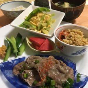 365日クッキング 7月6日の晩ごはん 2022年11月9日 海鮮ちらし寿司、ほうれん草と鯖煮、もやしの酢の物とプチトマト。 【365日cooking】調理時間30分以内がサブコンセプトコロナ禍以来、家族そろって在宅work。低いハードルで毎日普通のごはんを作る 2021年7月6日の晩ごはん 焼きしゃぶ、ブロッコリーの茎の卵炒めにインゲン、胡瓜、自家製紅大根の漬物、キムチ納豆。 2020年7月6日の晩ごはん 焼餃子、根菜の胡麻和えにレタス、ヨーグルトにキウイフルーツと佐藤錦。