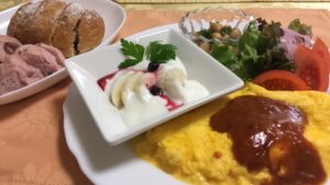 365日クッキング 7月4日のお昼ごはん(オムレツにデミグラスソース) 2020年7月4日のお昼ごはんである オムレツにレタスとトマト、大豆とパセリのサラダ、ヨークルとにバナナとブルーベリー。 【365日cook...