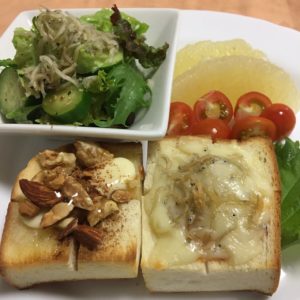 365日クッキング 四季巡り 7月22日のお昼ごはん 2022年11月14日 【365日cooking】調理時間30分以内がサブコンセプトコロナ禍以来、家族そろって在宅work。低いハードルで毎日普通のごはんを作る 2020年7月22日のお昼ごはん シラスチーズトースト、ハニーナッツのトースト、シラスのせのグリーンサラダ、プチトマトとグレープフルーツ。