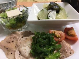365日クッキング 7月22日の晩ごはん 2022年11月14日 ビーフカレーライス、きんぴら牛蒡とレタスにプチトマト。 【365日cooking】調理時間30分以内がサブコンセプトコロナ禍以来、家族そろって在宅work。低いハードルで毎日普通のごはんを作る 2021年7月22日の晩ごはん 握り寿司(シマアジ、大トロ、平目、羽がつお他)、鶏肉と根菜の煮物、黒胡麻豆腐、刺身こんにゃくに酢味噌。 2020年7月22日の晩ごはん ポークソテー塩葱のせとプチトマト、コハダとグレープフルーツの昆布和え、冷や奴と小松菜。