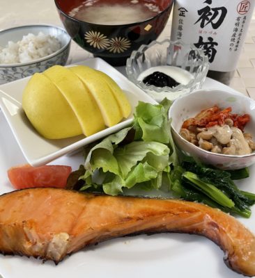 365日クッキング 3月4日の朝ごはん(銀鮭の西京味噌焼) 銀鮭の西京味噌焼、レタスと小松菜のお浸しにトマト、キムチ納豆、ヨーグルトとプルーン、りんご。 【365日cooking】調理時間30分以内が...