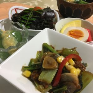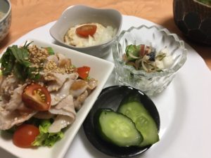 365日クッキング 7月23日の晩ごはん 2022年11月14日 うな重弁当。昼に続き、栄養補給ごはんである。 【365日cooking】調理時間30分以内がサブコンセプトコロナ禍以来、家族そろって在宅work。低いハードルで毎日普通のごはんを作る 2021年7月23日の晩ごはん 茄子の紫蘇巻き焼き、小松菜の坦々炒め、刺身こんにゃくに酢味噌、煮玉子に紅大根のピクルスと自家製沢庵の浅漬け。 2020年7月23日の晩ごはん 梅味のしゃぶしゃぶサラダ、茗荷と長芋の和え物、寄せ豆腐、自家製胡瓜のぬか漬け。