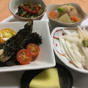 365日クッキング 7月24日の晩ごはん 2022年11月14日 握り寿司弁当。 小松菜の鯖味噌炒め。野菜を補う苦肉の策である。 【365日cooking】調理時間30分以内がサブコンセプトコロナ禍以来、家族そろって在宅work。低いハードルで毎日普通のごはんを作る 2021年7月24日の晩ごはん 茄子の紫蘇巻きとプチトマト、鶏肉と根菜の煮こごり風、千切り長芋、小松菜の坦々炒め。