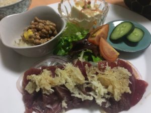 365日クッキング 7月27日の晩ごはん 2022年11月14日 夏野菜の餡掛け丼、焼肉丼、フライドチキンに野菜サラダ。スーパーのお弁当である。 【365日cooking】調理時間30分以内がサブコンセプトコロナ禍以来、家族そろって在宅work。低いハードルで毎日普通のごはんを作る 2020年7月27日の晩ごはん 鰹のお刺身にレタスとプチトマト、冷や奴に茗荷、自家製胡瓜のぬか漬け、玉葱納豆。