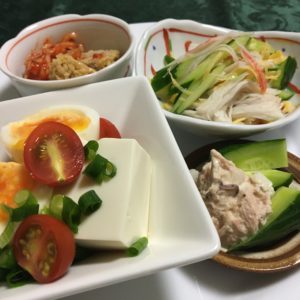 365日クッキング 8月3日の晩ごはん 2022年11月15日 海苔ご飯のお弁当。スーパーで調達したお弁当にプチトマトを添えた。 【365日cooking】調理時間30分以内がサブコンセプトコロナ禍以来、家族そろって在宅work。低いハードルで毎日普通のごはんを作る 2021年8月3日の晩ごはん 煮玉子と冷や奴にプチトマト、胡瓜にツナソース、カニカマと錦糸玉子と胡瓜の酢の物、キムチ納豆。 2020年8月3日の晩ごはん ひな皮の焼き鳥に千切りキャベツとプチトマト、夏野菜の揚げ浸し、玉葱納豆。
