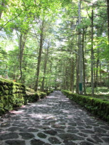 軽井沢 羽仁もと子の別荘へと続く石畳の道。