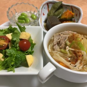 365日クッキング 9月15日の晩ごはん 2022年11月21日 刺身、もやしと胡瓜の酢の物、もずくの酢の物。 【365日cooking】調理時間30分以内がサブコンセプトコロナ禍以来、家族そろって在宅work。低いハードルで毎日普通のごはんを作る 2021年9月15日の晩ごはん 海老のすり流し枝豆餡、豚汁、だし巻き玉子とレタスのサラダにプチトマト、こんにゃくと枝豆の出汁炒めに南瓜の甘煮。 2020年9月15日の晩ごはん 握り寿司(ヒラマサ他)、冷製おでん、もやしと胡瓜の酢の物、小松菜とベーコンの炒め物。