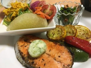 365日クッキング 9月20日の晩ごはん 2021年9月22日 お稲荷さん、豚バラとピーマンの大蒜炒め、冬瓜の帆立餡、だし巻き玉子、茗荷の酢味噌がけ。 【365日cooking】調理時間30分以内がサブコンセプトコロナ禍で家族そろって在宅work。外食を避け、テイクアウトもクッキングのうちと唱えながら得意でもない料理を手を抜きながらひたすら作る。 2020年9月20日の晩ごはん サーモンステーキと野菜のソテー、春菊のナッツ和え、グレープフルーツサラダとパンプキンサラダ。