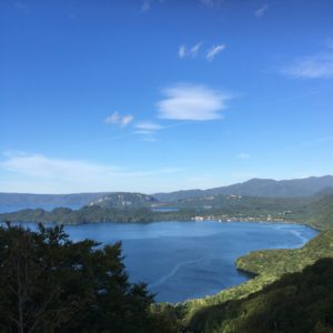 十和田湖がハート型に見える場所。秋田県小坂町 紫明亭展望台からの眺め。