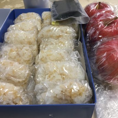 山頂でお昼ご飯である。山頂は体感温度が低く、筍のように脱いだ服を寒さに震えすべて身に付けた。