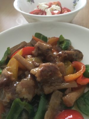 365日クッキング 8月27日晩ごはん(日高見牛三角バラを焼肉で) 日高見牛三角バラの焼き肉に焼き豆腐とアスパラエリンギ焼き、もやしの酢の物、グレープフルーツサラダ。日高見牛三角バラはジューシーな霜降りながら...