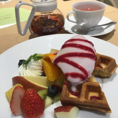 フルーツワッフルとティー。