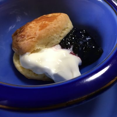 スコーンとクロテッドクリームにブルーベリージャム。