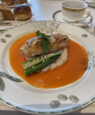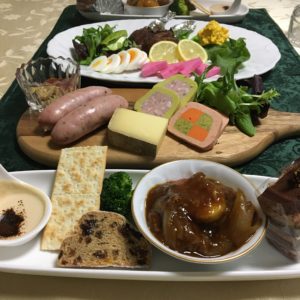 レーズントースト、コーンポタージュ、紫キャベツの千切りとインゲン、りんご。